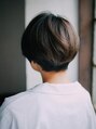 前下がりの長めに残したバングが目を引くマニッシュなショートスタイル。横からも後ろからも綺麗に見えるひし形。バングの流し方でも印象が変わります!
