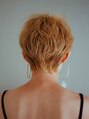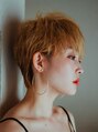 ベリーショートのハイトーンスタイル!オレンジ系の明るいカラーに襟足をバッサリと切った涼しげなヘアー。また後ろにボリュームを持たせることで、綺麗なシルエットに。そして前髪を薄くしシースルーバングにすることで軽くて動きのあるスタイリングに!