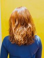 ハイトーンのオレンジカラーは流行りのカラーでアプリコットみたいでとっても可愛いです。センターパートで分けて大人っぽい印象もありますが、ハイトーンのカラーと全体をミックスで巻いた動きのあるデザインでカジュアルさもある女の子らしいスタイルです。