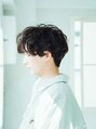 サイドツーブロックの短すぎないマッシュスタイル。全体的にパーマをかけてスタイリングがしやすいようにしました。黒よりも軽く見えるように少し明るめのアッシュで染めました。