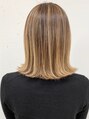 何度も重ねたハイライトが程よいムラ感を出してくれます。切りっぱなしの外ハネボブとも相性が良い外国人風ブロンドベージュスタイルです。