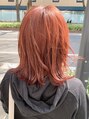 オレンジヘアー。レイヤーが入ったミディアムウルフでカジュアルに仕上げています。アッシュに飽きた方、おすすめです!髪質&ベースによってはブリーチ無しでも表現可能です。