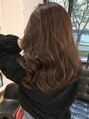 ナチュラルなベージュブラウンです。シークレットでハイライト&ローライトで、ナチュラルなコントラストを演出しています。重すぎないセミロングで大人カジュアルを創ります!