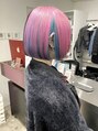ツートン&アンブレラカラーのボブ。ボブとデザインカラーは相性が良いです!ペールトーンのピンク&ブルー+ブラックで、全方向可愛いスタイルです^^ #ブリーチ#ボブ#タッセル#切りっぱなし#デザインカラー#ツートン#髪質改善#インナーカラー