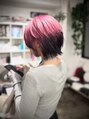 ピンクベースにルーツカラーと前髪に黒デザイン・少しくすみ感あるピンクで派手過ぎずで少し周りと差別化ができ、オシャレです・耳かけした時にもかわいく見えるようなデザインにしています◎トリートメントで艶と毛髪強化することでブリーチを継続できます