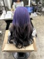 前回やったルーツカラーの残りをそのまま活かし、ブリーチは伸びた根本のみ。そこからブリーチ部分に紫を入れて仕上げた紫と黒のルーツカラー。
