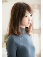 切りっぱなしのワンレングス。顔周りにしっかりレイヤーを入れたスタイルで揺れる毛束に。眉ギリギリの前髪で重×軽を。カラーは優しいピンクブラウン。