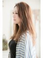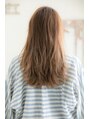 気張りすぎない脱力ウェーブで女らしく、前髪のS字ラインで更に小顔に。大き目ロッドで平巻きしランダムな動きをオン。カラーは明るいグレージュ