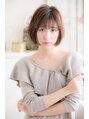 重めのシルエットで唇ラインのボブ。前髪は透け感シースルー。カラーは、コットンピンク