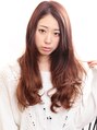 センターパートロングも明るめのカラーと毛先のウェーブで柔らかさ満載のふんわりロングスタイル。顔まわりのローライトで大人の雰囲気を出しました。