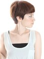 毛先重めのショート。健康的ショートマッシュに深めのマーメイドカラー。前髪上げてのアレンジもオススメショート。今年はハンサム×フェミニンで甘辛攻めショートを提案。丸みを帯びたフォルム、襟足のシェイプが今季のキーポイント。