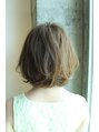 トップは根元中心にかけてふんわりさせ、それ以外は中間から毛先に動きをつければやわらかさのあるモテヘアーの完成。カラーは全体にいれたハイライトとローライトにより立体感を演出、ベースカラーは9トーンのライムアッシュで透け感を強調