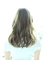 ほぼワンレングスのロングレングススタイル。エアーウエーブによりしっかりめのランダムな動きが楽しめます。しっかり熱を当てて乾かすことによりよりラフ感を出すことができます。カラーは12トーンのラベンダーブラウンで透け感と透明感を。