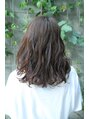 肩下のセミディレングススタイルです。くせ毛の方はもちろんストレートの方はパーマによる動きでひし形のシルエットですから小 顔効果も期待できます。カラーは8トーンのベーシックブラウンで安定感のあるツヤが出せます.