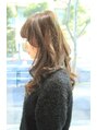 顔まわりはローレイヤーをいれて動きをだしていますが基本はワンレングスベースのAラインシルエットです。デジタルパーマによる強めウェーブでエッジをきかせ躍動感を出しました。カラーは9トーンのアッシュブラウンで透明感を出しパーマとの相性は抜 群です