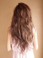 リッジの効いた大きめカールで ゆったりムードがモテを引き寄せる愛されロング。前髪をつくらないことで甘くなりすぎない大人感をプラス。