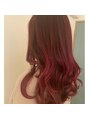 過去にブリーチ歴があるのでグラデーションで毛先に行くほどビビットに発色するチェリーレッドロング♪韓国アイドルと同じ色にしたいというご要望でした。そのようなオーダーも承ってます♪ご相談ください!