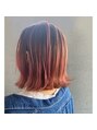 - 外ハネボブにカット、ブリーチでバレイヤージュの後、アプリコットピンクをオン!