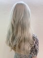 ブリーチ二回に黄色味を飛ばして白く見せるカラーを被せています。