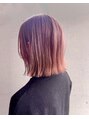 バレイヤージュでブリーチしたあとにシアピンクのカラーをかぶせました。伸びても根本が気になりにくいようにデザインしてあります☆外ハネになりやすいようにカットした切りっぱなしボブ。