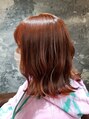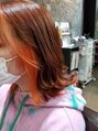 インナーカラーでオレンジにしました。ダメージが気になる方にもケアブリーチなどを提案させていただいています。酸熱トリートメントなどの髪質改善メニューもあるので気軽にご相談ください。