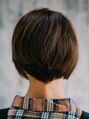 全体のウェイトがバックの高い位置にある前下がりのボブスタイルです。表面にハイライトをランダムに入れることで、立体感をだし、よりフェミニンな雰囲気に仕上げてあります。初めてショートスタイルにする方にもおすすめのスタイルです!【瀬田】