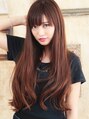 重めシルエットのローレイヤーロング。太めのロッドを使い揺れカールを。明るめのアプリコットアッシュで華やかを。