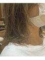 髪の負担を最小限に考え、ハイライトで全体をトーンアップ。その後寒色系カラーでダブルカラー。寒色系カラーと言う事で色味が暗く沈まない様に工夫をしました。カットは、癖を活かせるように全体にレイヤーを入れ、毛束の動きで立体感を出しました。