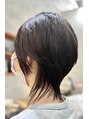 襟元にくびれを施したウルフヘア。丸みを帯びたシルエットとシュッとした襟足が軽快感のあるこなれた大人の雰囲気を感じさせてくれます。