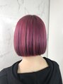 ビビットなピンク色のベースにブルーとバイオレットのハイライトを入れてユニコーンカラーにしました!切りっぱなしボブなのもとてもお洒落です!