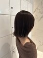 【ラベンダーカラー × ボブ】ほんのりラベンダーカラーで、ツヤとやわらかさを引き出したボブスタイル。光に当たるとほんのり透けるような色味で、暗めでも重たく見えず、上品な印象に。