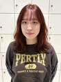 オレンジカラーで柔らかさとツヤ感をプラス。肌なじみがよく、顔色も明るく見える人気カラーです。重く見えがちなミディアムスタイルも、軽やかな印象に仕上がります。
