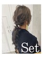 結婚式のお呼ばれセットのご予約受付中です〇ふわふわ質感の編みおろしにたまねぎアレンジをプラスしてルーズすぎず、パンツスタイルにも合うセット♪セットの際ヘアアクセサリー等の持ち込み自由なので、組み合わせ次第で主役級のヘアセットにも○