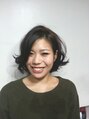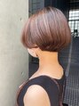 重めベースに毛先の柔らかカールでふんわり感を☆落ち着きのあるアッシュベージュカラーをチョイス!!これで、大人可愛い!!くせ毛風の抜け感ボブスタイル☆