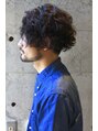 全体的に強めのウェーブをかけることでランダムな動きとボリュームをしっかりと出せるスタイル。中を刈り上げてツーブロックにすることで、フォルムのコントロールもバッチリです!!