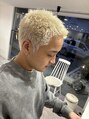 ハサミで長さを残したボウズヘア.裾の長さはバリカンも使ってすっきりした仕上がりになってます。ブリーチも2回して透明感あるホワイト系のカラーを.ポマードやグリースで艶感と動きを表現できます