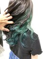 インナーにエメラルドカラーを入れたお洒落カラー表面はダークアッシュグレーでカラーする事で、コントラストが生まれて、よりエメラルドが引き立ちます★