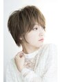 無造作で自然に毛束感が感じられるマッシュショートスタイル。ベージュより少し濃いめのショコラ色で「ローライト」を所々に仕込ませて遊びを利かせています。