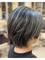 地毛の黒髪と白髪を活かしたハイライトだけのデザインカラー。プリンにならないので、なかなか美容室に来れない方におすすめです。
