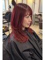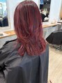 レッドカラーのミディアムレイヤースタイル。ベース明るめのカラーからレッドを最大限に濃く入れてます!お洒落を楽しみたい方に。