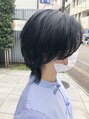 ショートやボブのカットはお任せください。前髪長めのハンサムウルフ。柔らかく、かっこいい質感に!カラーは、ブルーブラックで自然光でも透明感のある仕上がりに◎