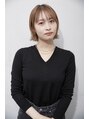 まとまるボブスタイル。乾かしただけで内にまとまり、写真のように外ハネにアレンジもできます◎カラーはブリーチ1回でつくる、ベージュ系カラーです◎