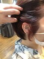 イヤリングカラーはレッドにオレンジを足して、全体的にはバイオレットとレッドで、同系色でまとめました。染めたては馴染みますが、イヤリングカラーはブリーチしてあるのでほかの所より落ちが早く、色落ちの違いで楽しめるカラーです。