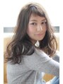Aラインのシルエットに低明度でも透明感のあるブルージュにゆるめのウェーブで柔らかい雰囲気に☆前髪はオン眉でもシースルーバングにすることで大人っぽく☆