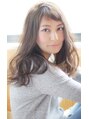 Aラインのシルエットに低明度でも透明感のあるブルージュにゆるめのウェーブで柔らかい雰囲気に☆前髪はオン眉でもシースルーバングにすることで大人っぽく☆