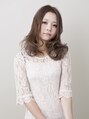 胸上のローレイヤーセミロング。大きめのロットで毛先からしっかりとウェーブをつくる。守ってあげたくなっちゃうようなふわふわウェーブがポイント。カラーは明るめのベージュブラウンで透明感をプラス。