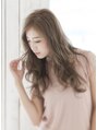 ゆるく揺れるカールの重なりと、ブリーチハイライトの効果で、透けるような柔らかさを演出。かき上げバングでエアリー感の中に色気を感じさせて
