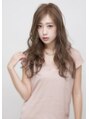 ゆるく揺れるカールの重なりと、ブリーチハイライトの効果で、透けるような柔らかさを演出。かき上げバングでエアリー感の中に色気を感じさせて