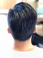 サイドフェードのコームオーバー。いわゆる CLASICAL BARBER STYLE のひとつです。男らしいスタイルでフォーマル、カジュアルどちらにも合います。