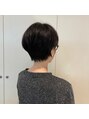 フロントに重みのある、マッシュショート。サイドは耳にかけると、すっきりとした印象のショートスタイル。スタイリング次第で、アレンジが楽しめるスタイル。
